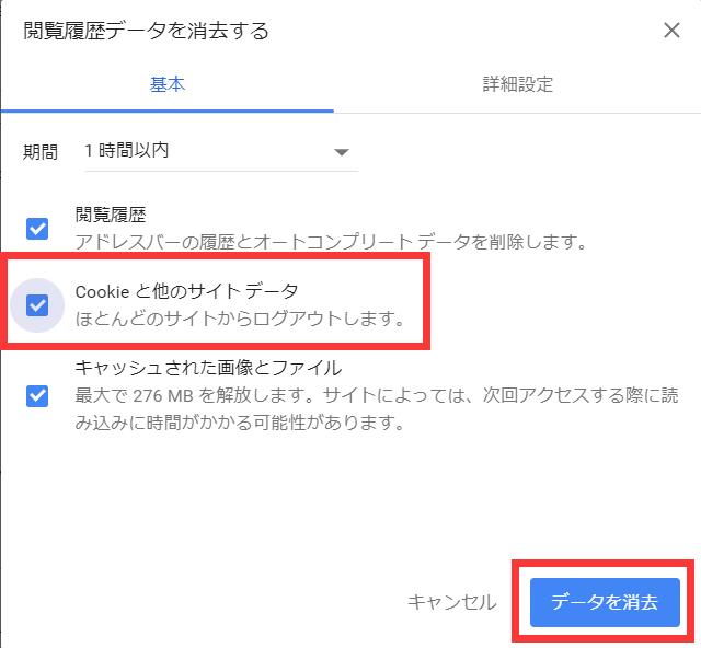 COOKIEと他のサイトデータも忘れない様にチェックして下さい。